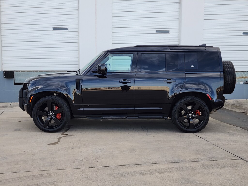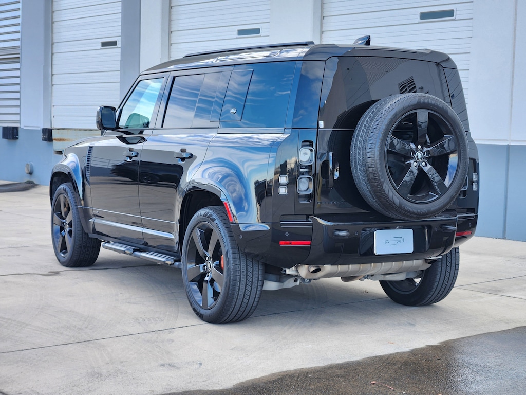 Certified. Odometer is 6751 miles below market average! 2023 Land Rover Defender 110 X Santorini Black Metallic 4WD 3.0L I6 Clean CARFAX. Apple CarPlay / Android Auto, Backup Camera, Bluetooth, Cruise Control, Heated and Cooled Seats, Keyless Entry, Leather, Navigation / GPS, Panorama Sunroof, Premium Sound, Steering Wheel Controls, Sunroof / Moonroof, 14-Way Heated & Cooled Electric Memory Seats, 3-Zone Climate Control w/Rear Cooling Assist, Air Quality Sensor, Apple CarPlay & Android Auto, Auto High-beam Headlights, Auto tilt-away steering wheel, Auto-dimming Rear-View mirror, Automatic temperature control, Body Colored Roof, Cabin Air Ionization w/PM 2.5 Filter (DISC), Extended Black Exterior Pack, Exterior Parking Camera Rear, Front dual zone A/C, Front fog lights, Fully automatic headlights, Garage door transmitter: HomeLink, Gloss Black Front Grille, Heads-Up Display, Heated front seats, Heated rear seats, Memory seat, Navigation system: Connected Navigation PIVI Pro, Power driver seat, Power moonroof, Power passenger seat, Radio: 700W 15 Speaker Meridian Surround Sound Sys, Remote keyless entry, Ventilated front seats, Wheels: 22 Gloss Black Finish Style 5098, Windsor Leather Seat Trim.Land Rover Approved Certified Pre-Owned Details: