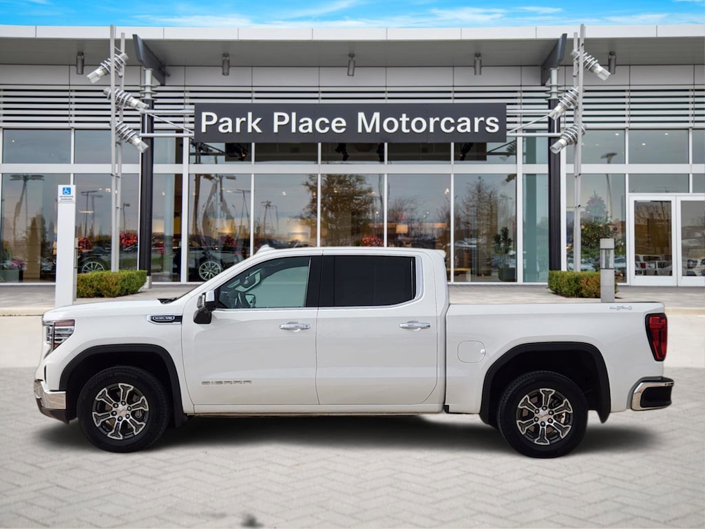 2025 GMC Sierra 1500 SLT 4D Crew Cab Summit White 4WD EcoTec3 5.3L V8 Clean CARFAX. 10-Speed Automatic, 4WD, Black Leather.CARFAX One-Owner.